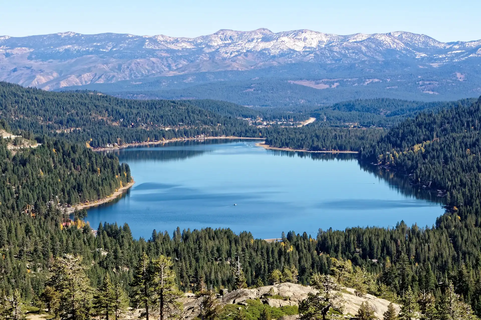 Donner Lake offers a laid-back mountain setting with blue-water views, forested hillsides, and a year-round outdoor rhythm shaped by boating, trails, snow days, and easy access to Truckee.